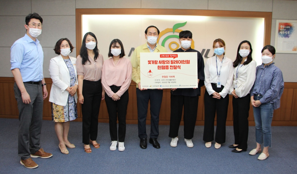 또한 헌혈증 모금을 통해 기부 받은 총 196장(6개 기관)의 헌혈증은 지난 7월 16일 나주시 희망복지지원팀으로 전달돼 긴급혈액이 필요한 나주 지역민을 위해 소중하게 쓰일 예정이다.