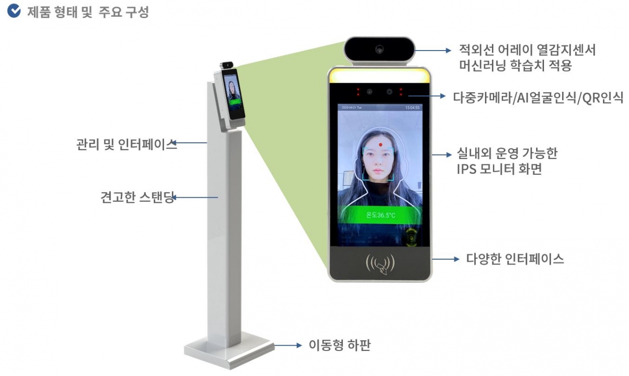 IRFOT-100에 적용된 얼굴인식 기술은 안면인식 인공지능(AI) 학습 데이터를 채용해, 측정 대상이 얼굴의 절반가량을 마스크로 가려도 사람을 정확하게 구분해낸다. 전원을 연결하면 즉시 작동해 장소나 인프라에 큰 제한을 받지 않고 쉽게 사용할 수 있다.