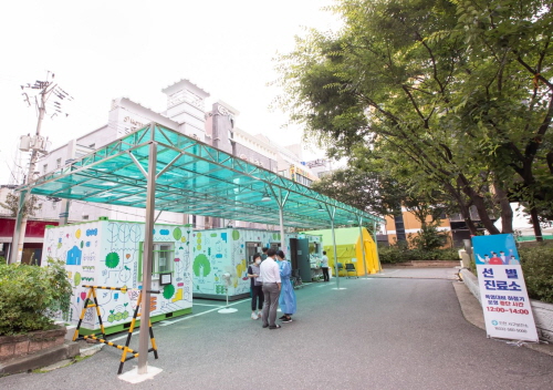 구는 많은 구민이 방문하는 장소인 만큼 선별진료소의 경관을 쾌적한 이미지로 개선해 방문하는 주민에게 친근감과 심리적 안정감을 줄 수 있도록 선별진료소 외관을 새롭게 꾸몄다.
