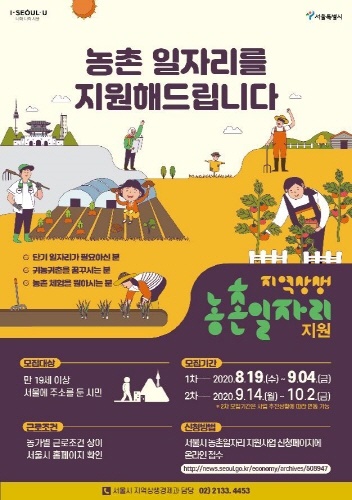 참여 희망자는 서울특별시 홈페이지에서 '농촌 일자리 지원사업'을 검색하거나 신청 페이지를 통해서 19일부터 내달 4일까지 온라인으로 접수하면 된다.