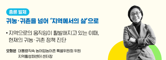 이 자리는 귀농‧귀촌 정책의 현황을 진단하고, 일시적인 정착 지원에서 벗어나 지속가능한 지역살이를 위한 정책방향을 논의하면서, 생생한 귀농‧귀촌 사례를 공유하기 위해 마련됐다.
