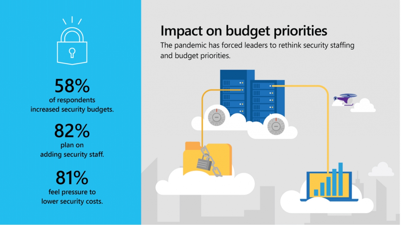 이와 관련해 마이크로소프트가 500명 이상의 직원을 둔 인도, 독일, 영국, 미국의 기업 리더 약 800명을 대상으로 코로나19 위협이 미치는 범위와, 사이버 보안에 필요한 예산·인력, 향후 사이버 보안 전망 등을 묻는 설문조사를 실시했다.