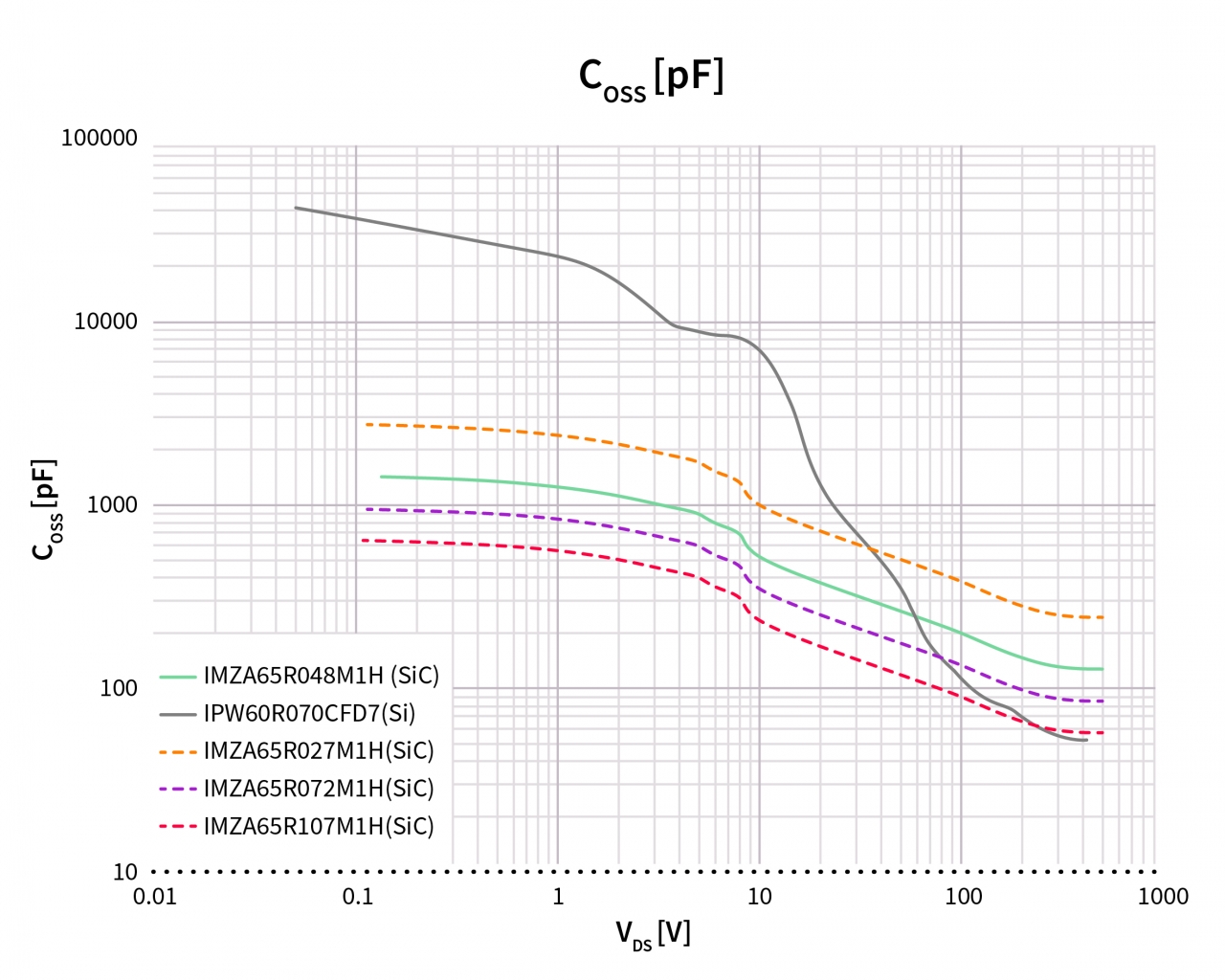 반도체 업계는 이 값을 낮추기 위해 노력해 왔으며, CoolMOS 제품 역시 발전을 거듭해오면서 향상된 성능의 고속 바디 다이오드를 포함하고 있다. 이런 노력을 통해 이전 MOSFET 대비 Qrr을 10배가량 낮출 수 있게 됐다. 놀라운 점은 CoolSiC 제품이 최신 고속 다이오드 CoolMOS 제품과 비교해 Qrr을 10배 더 낮춘다는 점이다.