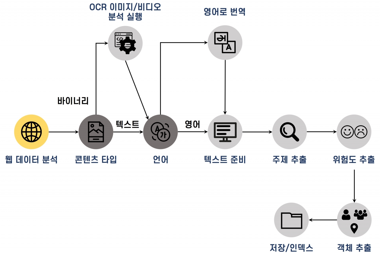 또한 고유의 알고리즘을 기반으로 50개 이상의 언어로 위협 정보 데이터 분석을 수행하는 사이버 호크 아이는 범죄자가 사용하는 관련 은어나 키워드까지도 모두 수집·분석할 수 있다. 여기에 주제와 위험도, 객체 추출도 가능해 수집된 위협 정보에 대한 정확성을 더욱 높이고, 국제적인 사이버 범죄에도 대응할 수 있다.