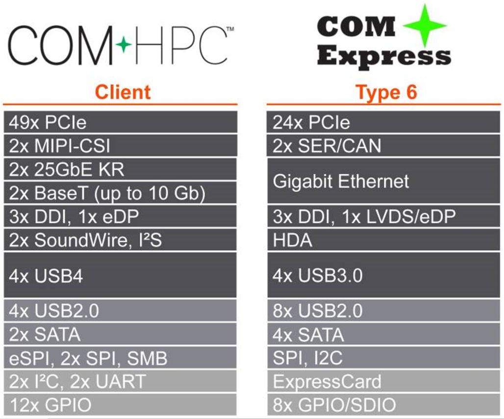 콩가텍이 인텔의 이런 새 SoC에 대한 조기 상용화와 함께 COM-HPC, COM 익스프레스 컴퓨터 온 모듈과 최신 인텔 IOTG 임베디드 제품군의 추가는 OEM한테 선택 가능성의 범위를 크게 확대시킨다. 현재 COM-HPC 사이즈 A뿐만 아니라 COM 익스프레스 컴팩트 타입 6 컴퓨터 온 모듈에 탑재된 다음의 프로세서 모델이 지원에 포함된다.