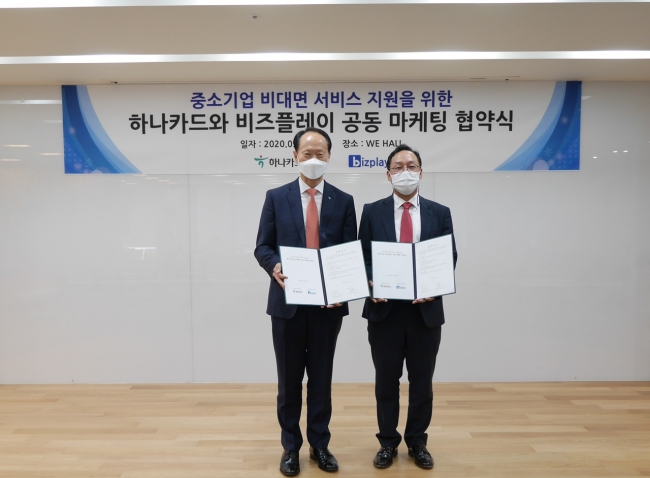 [테크월드=이혜진 기자] 하나카드와 비즈플레이가 중소기업 비대면 서비스 지원을 위한 업무협약(MOU)을 체결하고 본격적으로 공동 마케팅에 나선다고 29일 밝혔다.
