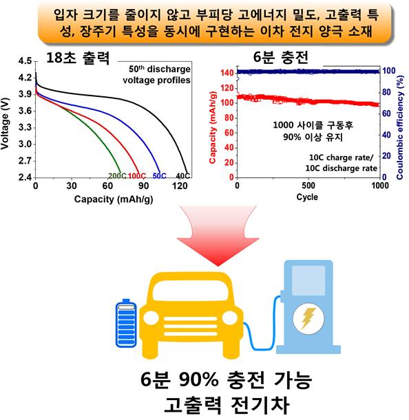 교신 저자인 강병우 교수는 “기존 접근법은 빠르게 충‧방전할 수 있도록 입자의 크기를 줄여 항상 에너지 밀도의 저하가 문제로 지적됐다”며 “이번 연구 성과를 통해 빠른 충·방전, 높은 에너지 밀도, 오랜 성능 유지 시간 등을 모두 충족시킬 수 있는 이차전지를 개발할 수 있는 기반을 마련했다”고 말했다.