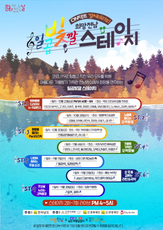 행사는 집중호우로 피해를 보거나 문화를 접할 기회가 많지 않은 도내 7개 시군에서 펼쳐지며, '온택트 컬처테라피, 희망전남 일곱빛깔 스테이지'라는 주제로 막이 오른다.