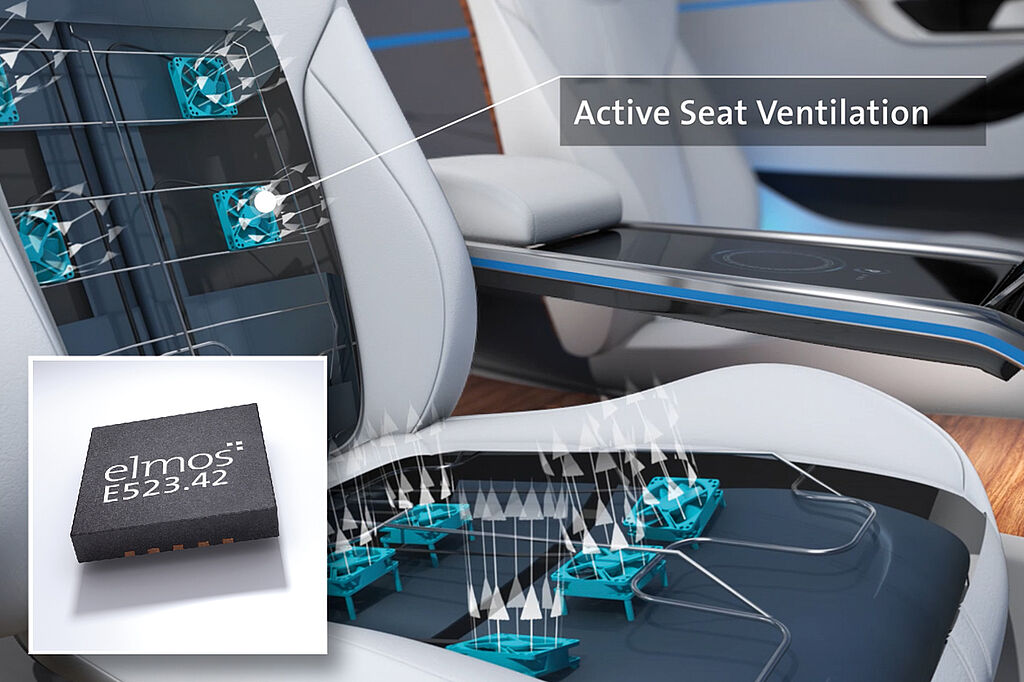 QFN5X5 패키지로 제공되는 E523.42는 3상 BLDC 모터, 3상 STEPPER 모터 또는 최대 두 개의 DC 모터를 구동할 수 있어, 능동적으로 제어되는 전동차양막(louver)이나 차량용 시트에 사용되는 중소형 팬 등에 적합하다.