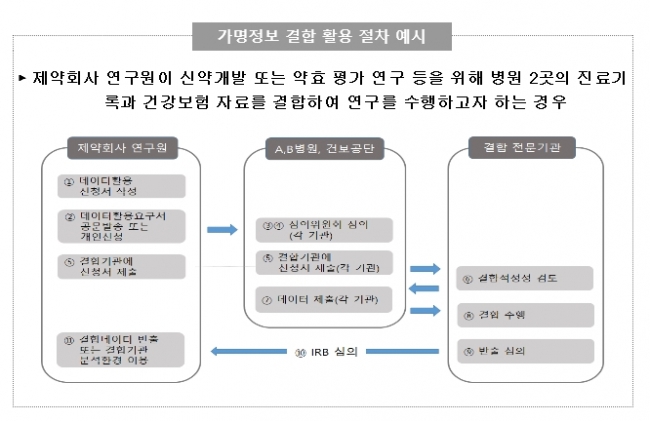 가명 정보 결합 활용은 복지부가 정부 최초로 공개한 보건의료 데이터 활용 가이드라인에서 제시된 가명 정보 결합 활용절차에 따라 시행된다.