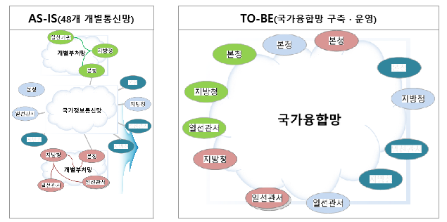 현재 정부기관이 이용하는 정보통신망은 48개 국가기관이 개별적으로 구축·운영하고 있어, 중복 회선에 따른 예산 지출의 비효율성, 통신망 보안관제 분산에 따른 각 기관별 관리역량 격차, 재난발생 시 통신사업자 서비스 중단 등의 우려가 있었다.