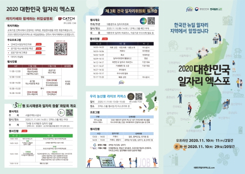 대통령직속일자리위원회·행정안전부가 주최하는 '2020 대한민국 일자리 엑스포'는 '한국판 뉴딜 일자리, 지역에서 앞장섭니다'로 주제로 진행된다.