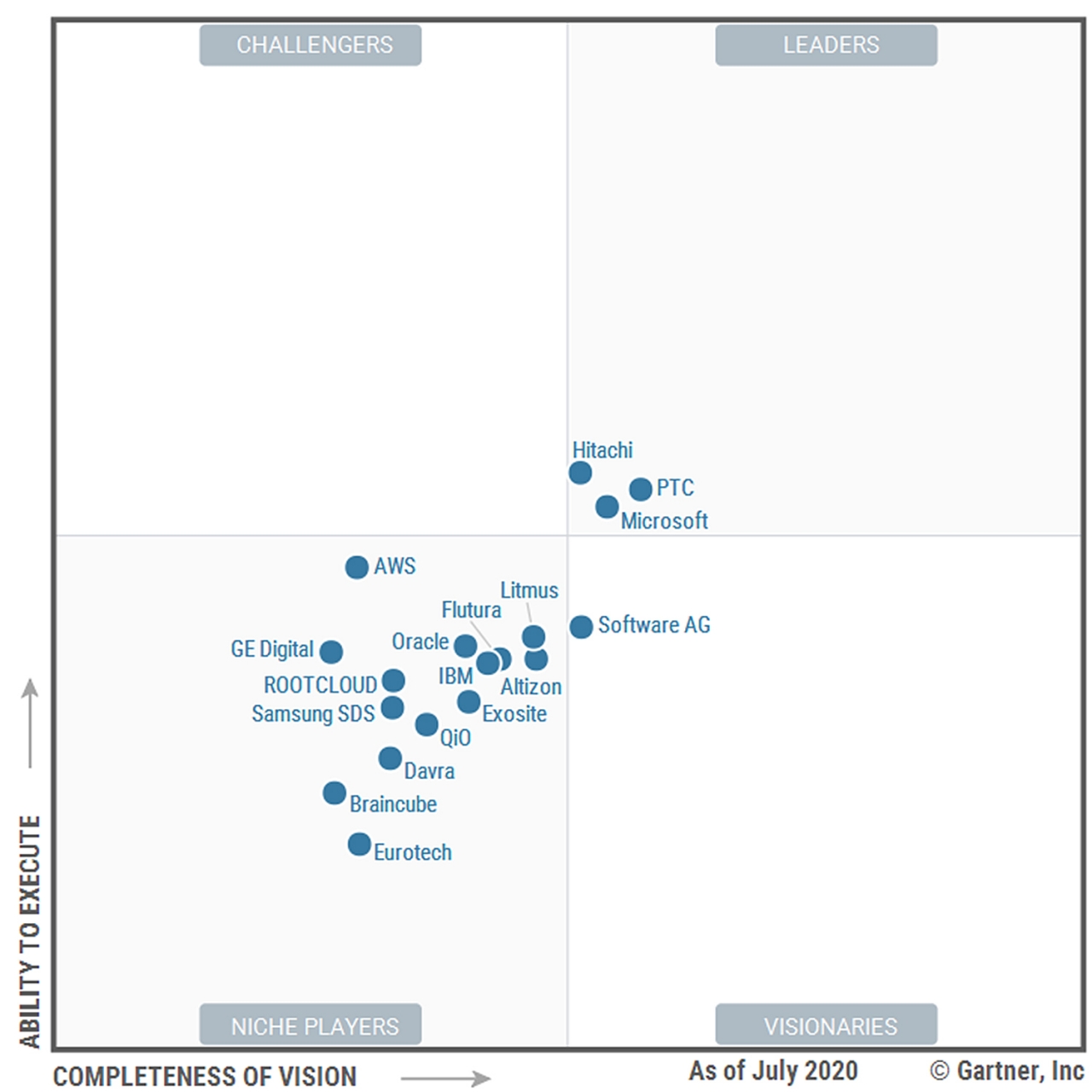 IIoT 플랫폼에 대한 가트너 매직 쿼드런트는 '실행 능력(Ability to Execute)'과 '비전 완성도(Completeness of Vision)의 두 축으로 이뤄진다. PTC가 가장 상위 기업으로 분류한 '비전 완성도'의 평가 기준은 기업의 마케팅, 매출, 오퍼링(제품), 수직 산업, 혁신, 지리적 전략과 함께 기업의 시장 이해도, 비즈니스 모델을 망라한다.