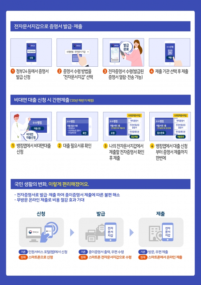 한편, 행안부는 전자증명서를 11월 말 20종, 12월에 57종을 추가로 서비스(누적 100종)할 예정이며, 민간기업 등과 협력해 전자증명서 사용분야를 계속 확대해 나갈 계획이다.