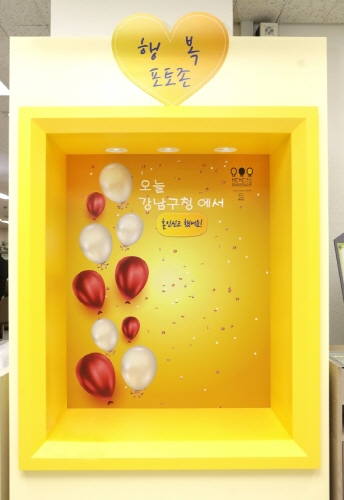 포토존에서는 '오늘 강남구청에서 혼인신고 했어요', '오늘 우리 아이 출생 신고했어요'라는 메시지가 적힌 자석 카드를 상황에 맞도록 부착 후 구청을 방문한 누구나 자유롭게 기념촬영을 할 수 있다.