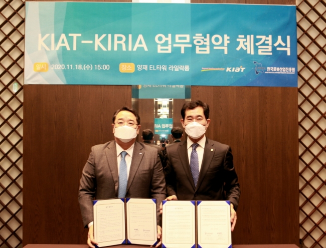 KIAT는 한국로봇산업진흥원(KIRIA)과 연구장비 활용지원 고도화를 위한 업무협약을 체결했다고 최근 밝혔다. 앞으로 양 기관은 기관간 연구장비 인프라 정보를 공유하고, 이를 활용한 기업지원 서비스를 도출해 내는 데 협력할 계획이다.