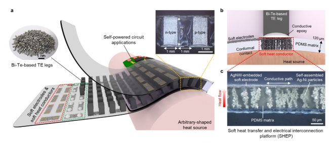 열전소자는 소재 양단의 온도 차이로 인해 생성되는 전압을 활용하는 에너지 변환 소자로, 버려지는 열에너지를 실생활에서 활용 가능한 전기 에너지로 변환한다는 점에서 친환경 에너지 하베스팅 소자로 각광받고 있다. 최근에는 다양한 형태를 가지는 열원에서 발생하는 폐열을 전기 에너지로 변환할 수 있는 유연 열전소자가 활발히 보고되고 있다. 이런 유연한 열전소자를 피부에 붙이면, 인체의 체온만으로 배터리 없이 웨어러블 기기를 동작시킬 수 있다.
