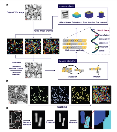 연구진은 자연에서의 진화를 모방한 유전 알고리즘이라는 기계학습 기법을 활용해 이미지 분석에 사용되는 다양한 방법·변수들을 자동적으로 최적화함으로써 투과전자현미경 이미지로 얻은 나노입자의 형태적 정보를 99.75%의 높은 정확도와 0.25%의 낮은 오인식률로 분석해내는 기술을 개발했다.