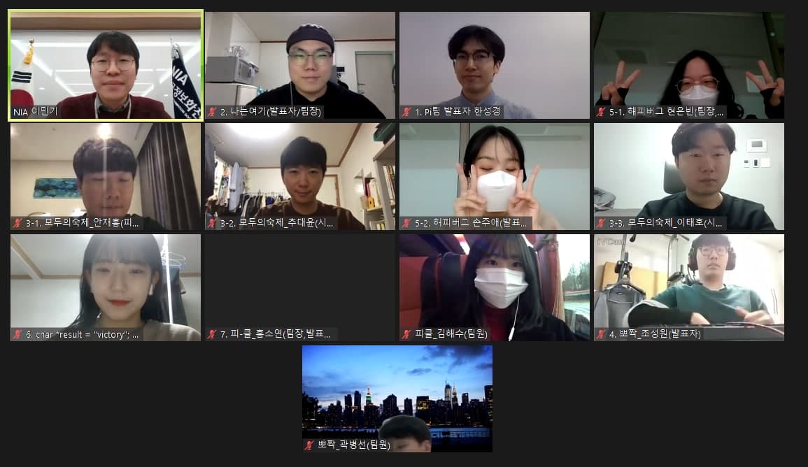 이번 공모전 본선은 코로나19 예방을 위해 NIA에서 확산 중인 문서공유·협업툴(NiCloud)을 활용해 온라인으로 진행됐다.