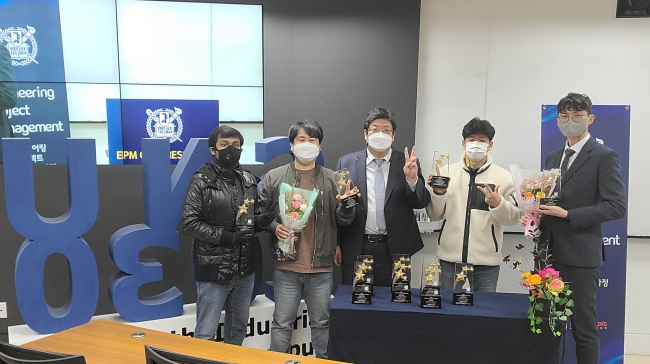 오전 행사의 특별순서로는 EPM 연구실의 ‘스타프로젝트매니저(SPM)’ 인증시스템을 소개하고, 이재현(공학전문대학원 석사3기) 외 50명에게 인증패가 수여되었다. 인증자들은 EPM의 지식과 경험을 기반으로 향후 플랫폼에서 전문가로서 역할을 수행할 예정이다.