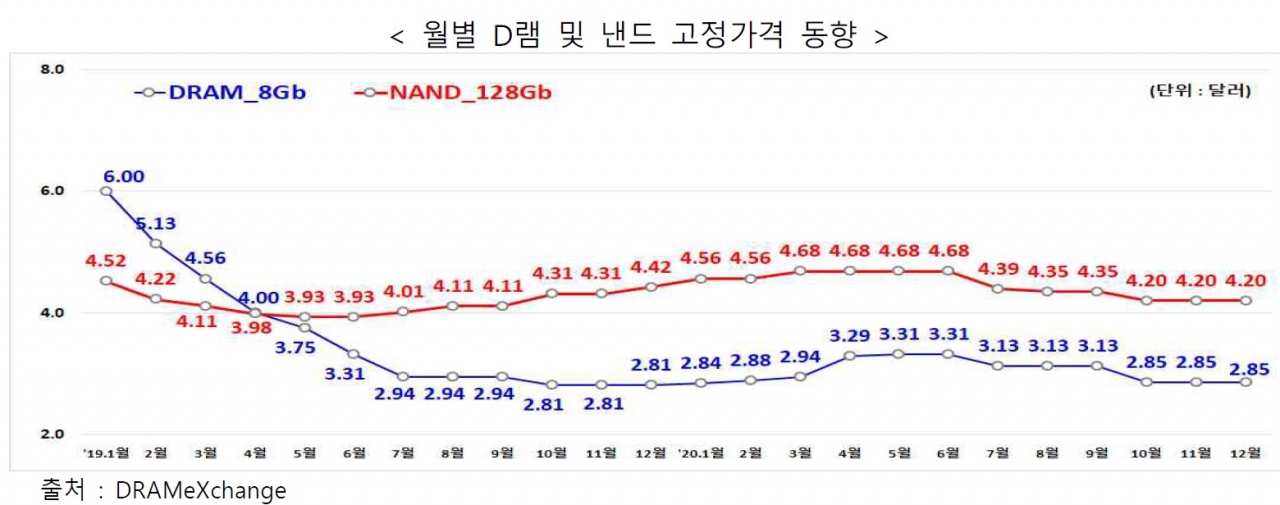D램은 연초부터 초과수요로 전환해 그폭이 점차 확대되고 낸드플래시는 초과공급 상태를 유지하다가 하반기부터 초과수요로 전환할 것으로 예상된다. D램 가격은 2021년 1분기부터 상승세 전환 후 상승세 지속될 것으로 보이며, 낸드플래시 가격은 올해 전반적으로 완만한 하락세를 이어갈 것으로 예측된다.