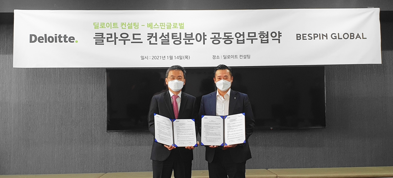 [테크월드=이혜진 기자] 베스핀글로벌이 딜로이트 컨설팅 코리아와 ‘클라우드 컨설팅 분야 협력을 위한 업무 협약서(MOU)’를 체결했다고 15일 밝혔다.