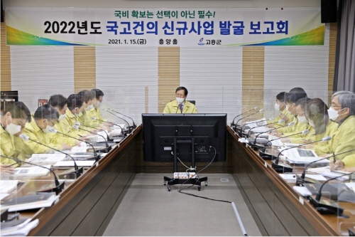 군에 따르면 15일 군청 흥양홀에서 송귀근 군수 주재로 全 부서장들이 참석한 가운데 2022년도 국고지원 건의 신규사업 발굴보고회를 개최했다고 밝혔다.