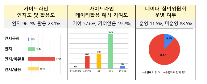 가이드라인 활용실태 파악을 위한 사전 설문조사 결과, 가이드라인에 대한 인지도와 활용 기대감은 높지만, 아직은 활용 준비단계인 것으로 나타났다.
