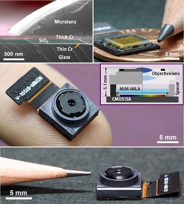 연구팀은 광 흡수 구조를 갖는 미세렌즈 배열을 포토리소그래피(Photolithography), 리프트 오프(Lift-off), 열 재유동(Thermal reflow) 공정을 통해 양산 제작했다. 또한, 라이트필드 카메라의 전체 두께를 최소화하기 위해 미세렌즈의 방향을 이미지센서 방향의 역방향으로 배치하고 대물렌즈와 미세렌즈 사이 거리를 2.1mm 수준으로 줄여, 전체 5.1mm의 두께를 갖는다. 이는 현재까지 개발된 라이트필드 카메라 중 가장 얇은 두께다.