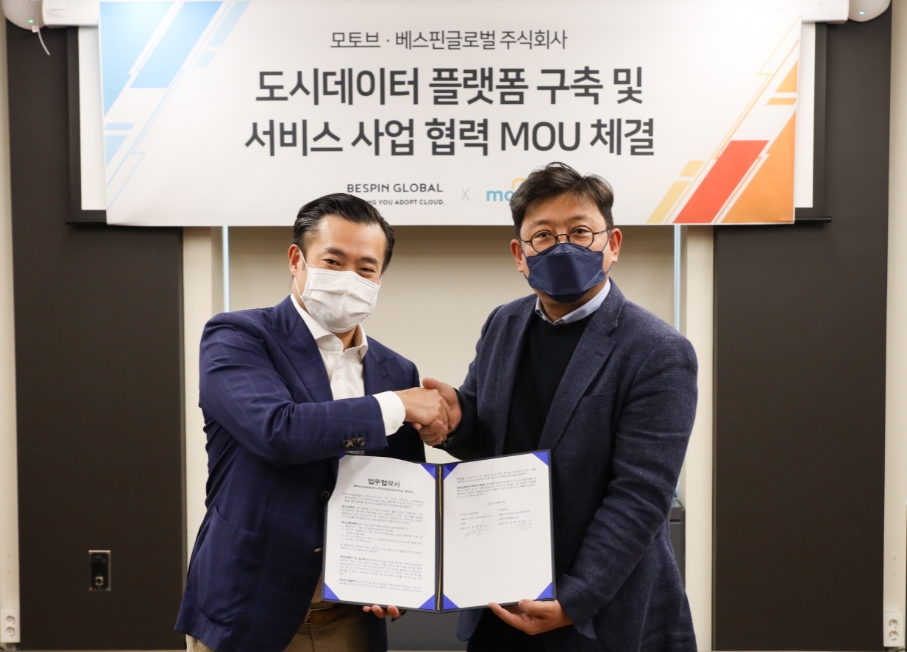 [테크월드뉴스=김경한 기자] 베스핀글로벌이 모빌리티 어반테크 기업 모토브와 ‘도시데이터 플랫폼 구축과 서비스’ 사업을 위한 업무협약을 체결했다.