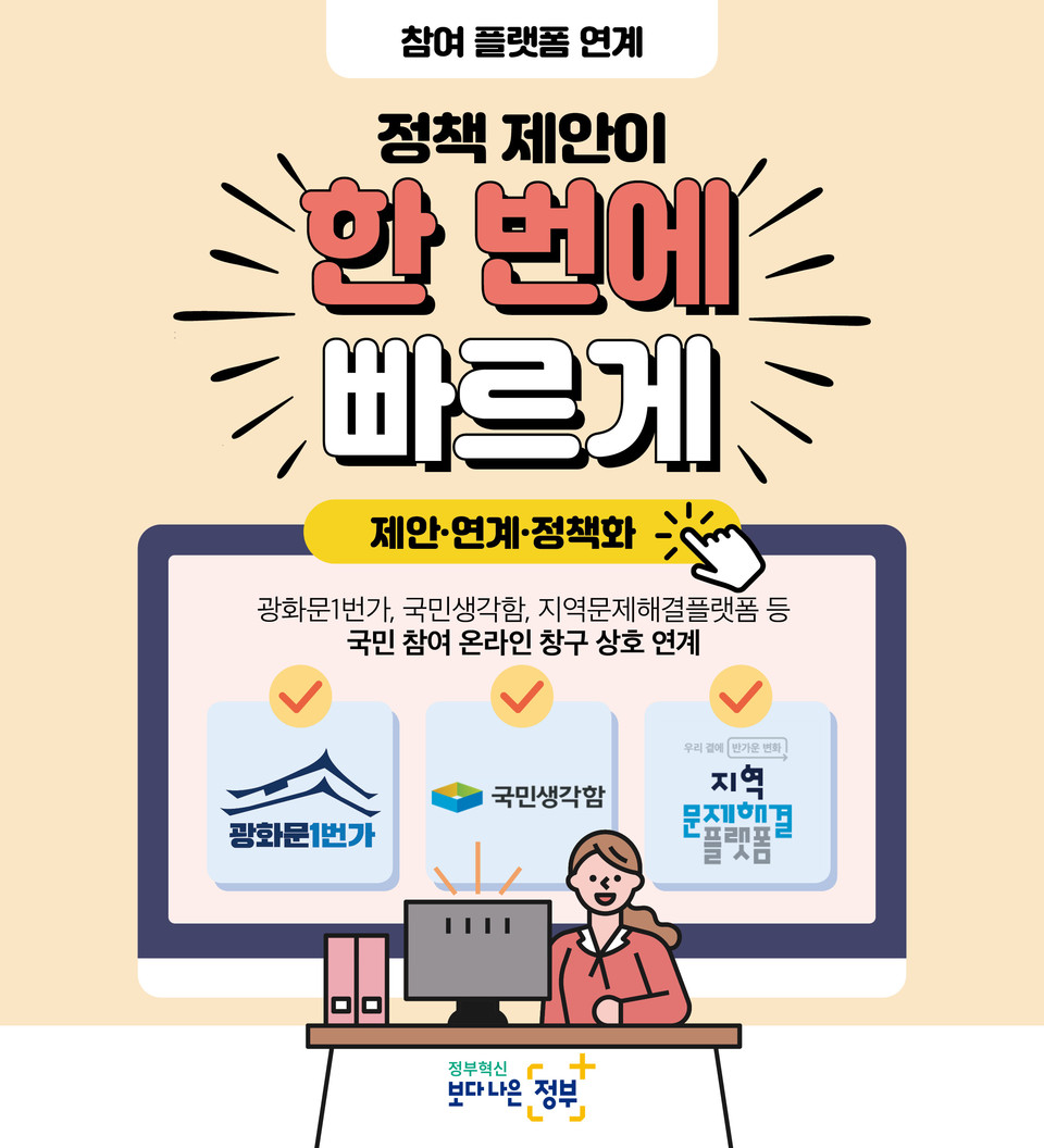다양한 국민참여 창구를 연계해 정책제안에 대한 접근성을 높이고 체감도 높은 국민 제안은 신속하게 정책화하는 패스트트랙을 4월부터 운영한다.