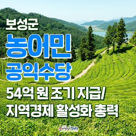 [테크월드뉴스=방제일 기자] 보성군은 코로나19 확산으로 침체한 지역 경제 활성화를 위해 '전남형 농어민 공익수당' 54억 원을 3월 말까지 전액 지급한다고 밝혔다.