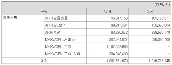 매출이 가장 감소한 부문은 AR 솔루션이다. 지난해 6333만원의 매출을 기록하며 전년 동기(2억9954만원) 대비 78.9% 급감했다.