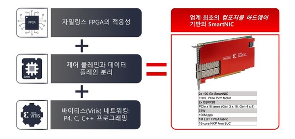스마트 NIC인 알베오 SN1000은 업계 최초로 컴포저블 하드웨어 기반이며 울트라스케일+ 자일링스의 FPGA에 대한 적응성을 가지고 있다. 또한 멀티플 ARM을 갖고 있어 제어 플레인과 데이터 플레인이 따로 분리됐다. 바이티스(Vitis) 네트워킹을 통해 높은 수준의 프로그래밍 언어(P4, C, C++)를 사용하고, 새로운 프로토콜과 애플리케이션을 처리하는 네트워크 기능을 구현할 수 있다.