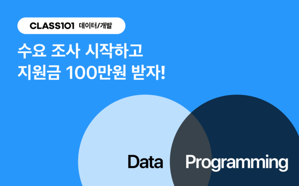 [테크월드뉴스=이혜진 기자] 클래스101이 데이터·개발 분야의 크리에이터에게 상당의 오픈 지원금(현금 50만원, 마케팅비 50만원)을 제공한다고 23일 밝혔다.
