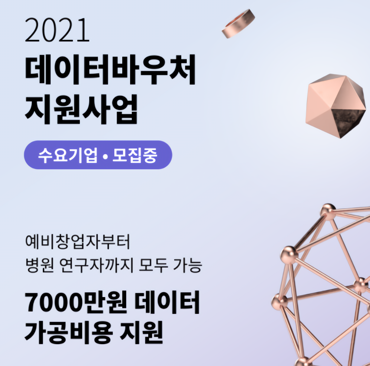 데이터바우처는 사업에 필요한 데이터 또는 데이터 가공 서비스 관련 예산을 바우처 형태로 지원하는 정부사업으로, 중소기업, 1인기업, 예비창업자는 물론, 공공기관, 연구기관, 대학연구팀, 병원 등의 사회현안 해소에 도움이 되고 있다.