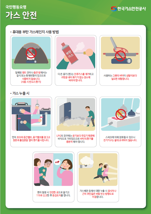 김종한 행안부 예방안전정책관은 “봄꽃이 피면서 많은 분들이 야외 활동을 즐길텐데, 휴대용 가스레인지를 사용할 때는 화기 주변 정리정돈에 신경쓰고, 특히 밀폐되고 좁은 장소는 화재와 질식사고의 위험이 높으니 각별히 주의해야 한다”고 당부했다.