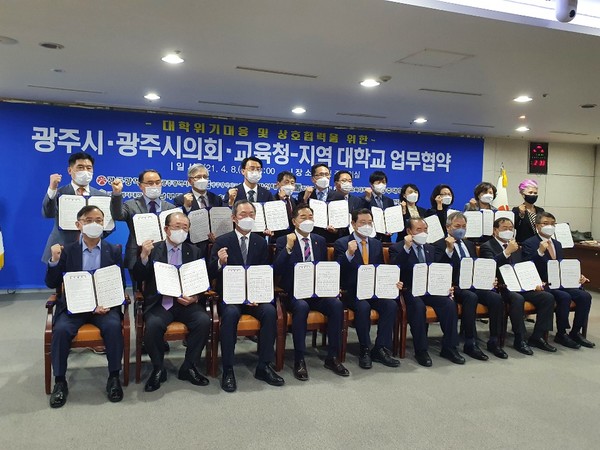 협약 주요 내용에는 ▲지역대학 위기대응과 대학발전을 위한 ‘광주광역시 대학발전협력단’구성과 공동 대응 ▲광주시: 대학발전협력단 총괄운영, 광주광역시 교육청과 지역대학: 실무인력 파견지원 ▲지속가능한 경쟁력을 갖춘 전문인력 양성과 연구활동으로 새로운 지식을 창출해 지역연계산업 발전의 기반 마련 ▲대학, 학문간 불균형 해소와 지역대학 육성정책의 실효성을 확보하기 위한 관련법과 제도 개선 ▲인공지능, 헬스케어, 자동차, 에너지, 문화콘텐츠 등의 분야에서 미래 신성장 동력을 마련하기 위한 교육과정 특성화를 추진하고 청년일자리 확충에 적극 협력 등의 사항이 포함됐다.