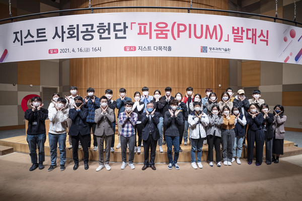[테크월드뉴스=방제일 기자] 지스트(광주과학기술원)는 4월 16일(금) 오룡관에서 지스트 재학생 31명으로 구성된 사회공헌단 ‘피움’발대식을 개최하고 본격적으로 사회공헌 활동에 나선다.
