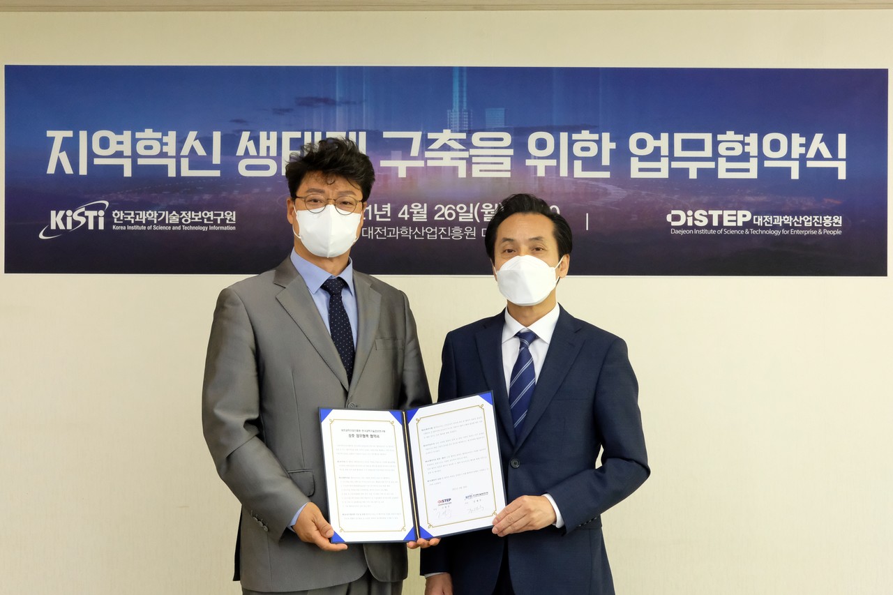 [테크월드뉴스=서유덕 기자] 한국과학기술정보연구원(KISTI)과 대전과학산업진흥원(DISTEP)은 지역혁신 생태계 구축을 위한 업무협력 협약을 체결했다고 26일 밝혔다.