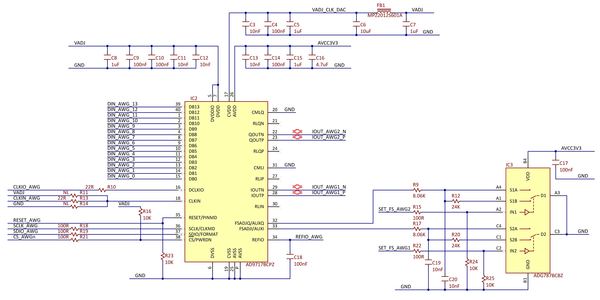 변조된 신호를 아날로그 도메인으로 변환하기 전에 지모드 DAC 모듈의 디지털-아날로그 변환기를 구성해야 한다. 이는 기판에 아날로그 신호를 전달하는 장치의 집적회로(IC∙Intergrated Circuit)을 필요한 값으로 설정한다.