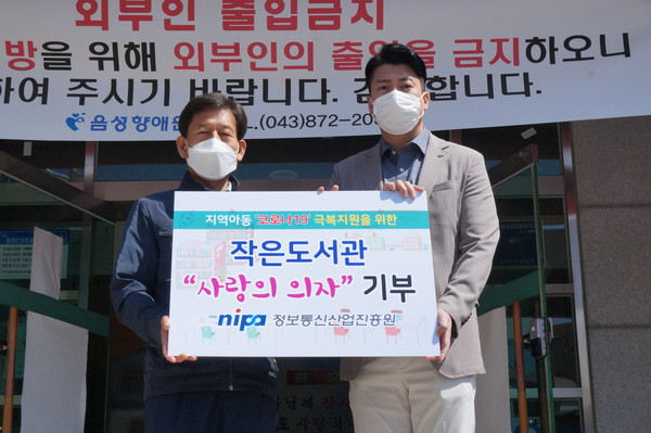 [테크월드뉴스=방제일 기자] 정보통신산업진흥원(이하 NIPA)은 어린이날을 맞아 사회복지시설인 음성향애원의 작은 도서관에 필요한 ‘사랑의 의자’ 구입비 200만 원을 전달했다고 4일 밝혔다.
