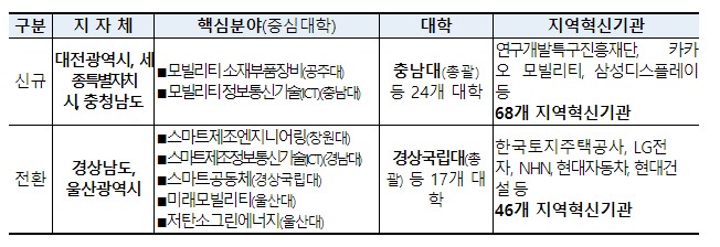 교육부, 한국연구재단은 5월 6일 2021년 지자체-대학 협력기반 지역혁신 사업에 신규로 대전·세종·충남 플랫폼, 전환형으로 울산·경남 플랫폼을 예비 선정·발표했다.