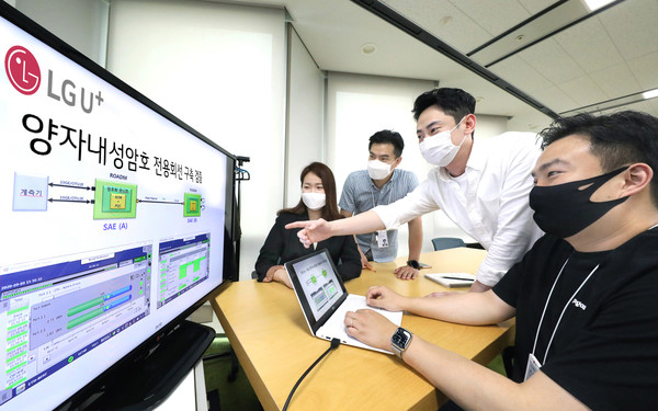 LG유플러스가 사용한 공개키(비대칭키) 방식인 격자기반 양자내성암호 알고리즘은 키생성에 소요되는 시간과 키교환 과정에 사용하는 메모리 용량 등 시험 기준을 훨씬 능가했다.