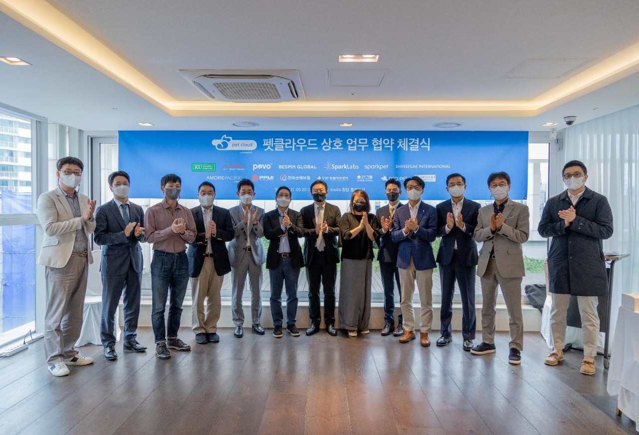 스파크펫은 지난 20일 놀로스퀘어에서 신세계인터내셔날, 아모레퍼시픽, 한화손해보험, 건국대학교 산학협력단, 베스핀글로벌, VIP동물의료센터 등의 각 분야의 전문 기관, 기업, 디디케어스와 같은 스타트업과 함께 반려동물 관련 전 방위적 데이터를 수집하고 이를 사업화하기 위한 다자간 업무 협약식을 개최했다.