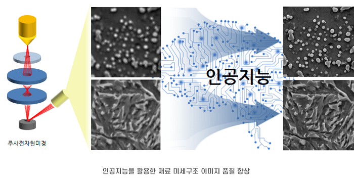 포스텍이 한국재료연구원과 공동연구를 통해 신소재 개발 과정에서 필수적으로 사용되는 재료분석 장비인 주사전자현미경 시스템에 인공지능 기술을 적용함으로써 사람의 개입 없이 인공지능 스스로 재료 미세구조 이미지의 품질을 판별하고 향상시킬 수 있는 기술을 개발했다.