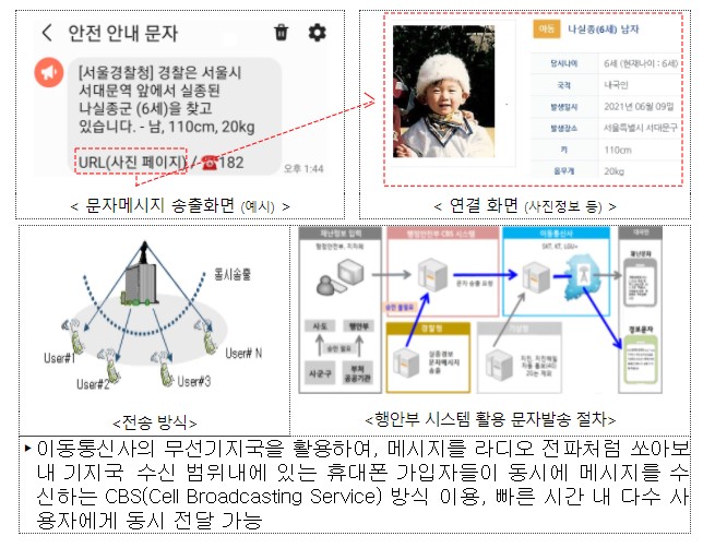 경찰은 실종아동 등 발견에 실질적인 역할을 할 수 있도록 자체 문자발송 시스템을 구축하는 등 제도를 지속 보완해 나갈 계획이다.