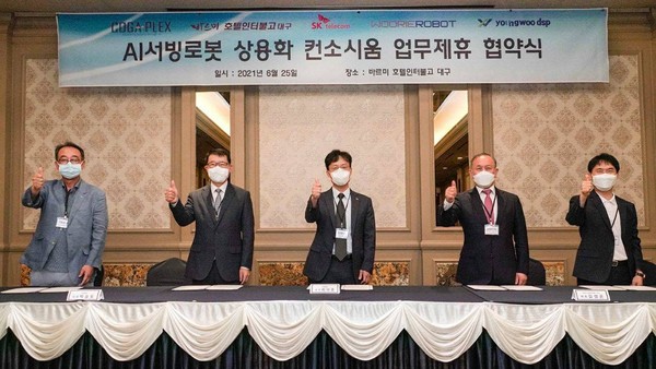 [테크월드뉴스=이재민 기자] 디스플레이 및 반도체 검사장비 전문업체인 영우디에스피가 6월 25일 SK텔레콤, 우리로봇, 코가플렉스, 바르미 인터불고호텔대구 등과 AI(인공지능) 서빙로봇인 ‘서빙고’의 상용화를 위해 업무협약을 체결했다.