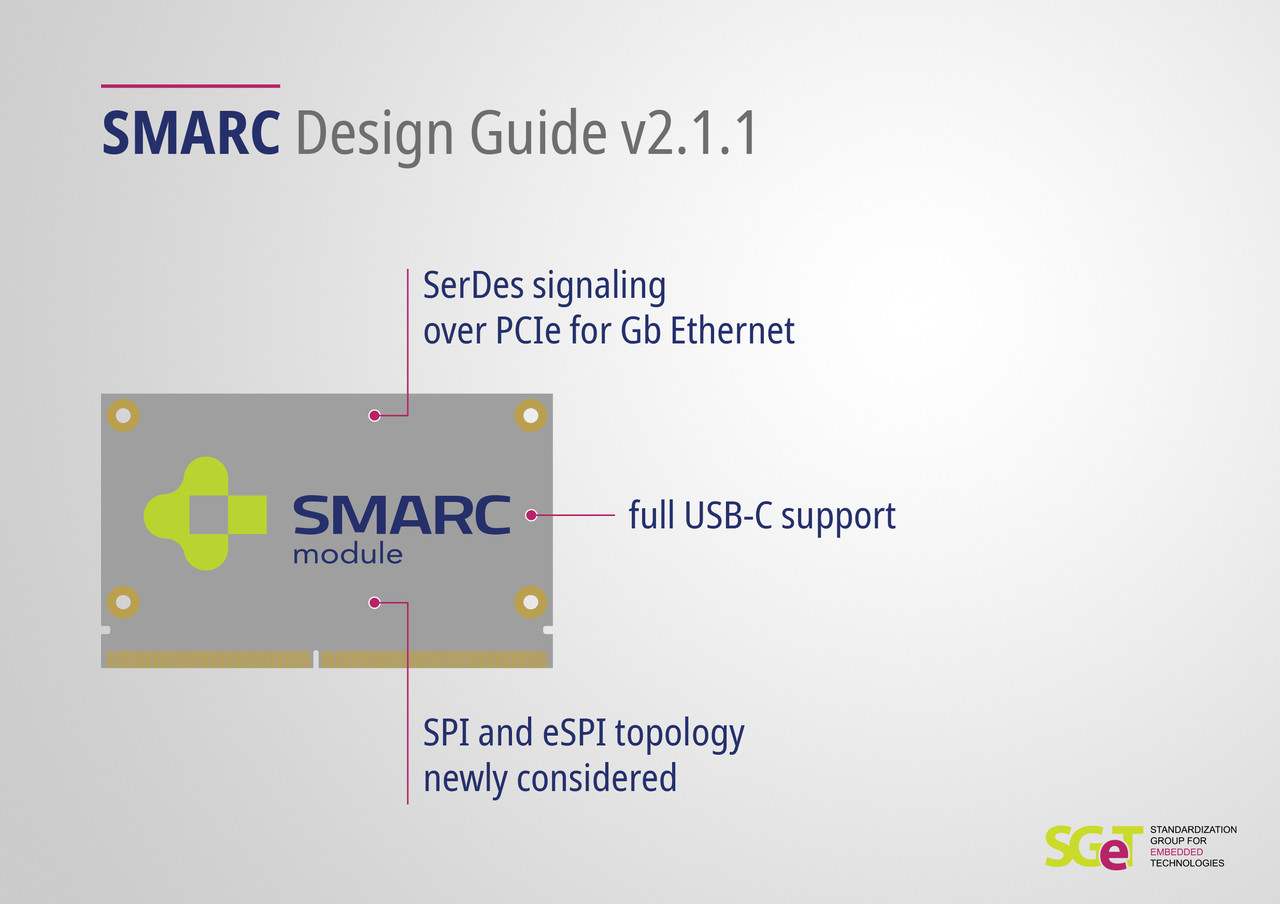 새로운 사양은 Gb 이더넷용 PCIe를 통한 SerDes 신호 전달과 관련해 디자이너에게 자유를 부여할 뿐만 아니라, 단일 USB 인터페이스를 통해 USB 3.2 Gen1 및 DisplayPort Alt 모드를 제공하는 전체 USB-C를 지원한다. 새 릴리스는 완전한 하위 호환성을 갖춘 최신 기술을 구현할 수 있는 이점을 포함해 SMARC COM(Computer-on-Module) 표준을 미래에 증명하기 위한 SGET의 지속적인 노력을 보여준다.