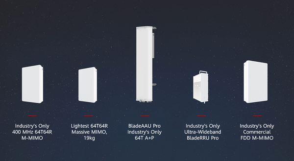 공개된 제품과 솔루션은 ▲400MHz 초광대역 64T64R Massive MIMO(대용량 다중입출력장치) ▲블레이드 AAU 프로 ▲블레이드 RRU 프로 ▲상용 FDD Massive MIMO 등이다.
